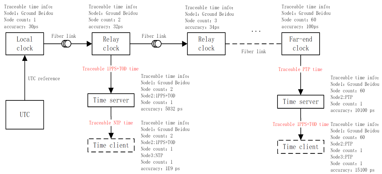 In such a complex time synchronization network, although end or intermediate nodes can obtain time information, there is no means to know where the obtained time information comes from or whether it is reliable. The traceable timing system invented by Taifu can well solve these problems.